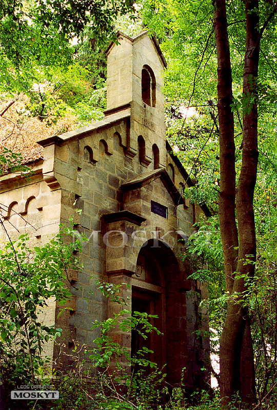 Odbočujeme ze silničky do zpustlého lesa a krátce poté se před námi z hustého porostu vynořuje zvláštní stavba. Je vybudována z poctivých kamenných kvádrů a na první pohled je patrné, že tomu kdo ji dal stavět na ní velmi záleželo. Jak by také ne. Vždyť měl v útrobách této budovy strávit doslova celou věčnost. On i jeho rodina. Jak totiž prozrazuje nápis nad vchodem, jedná se o „rodinnou hrobku“.